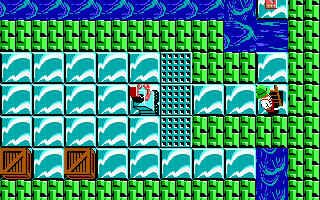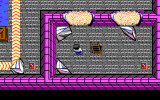 Puzzle-action. Push crates, marble balls and mirrors to disable or avoid robots, and rescue the dog.